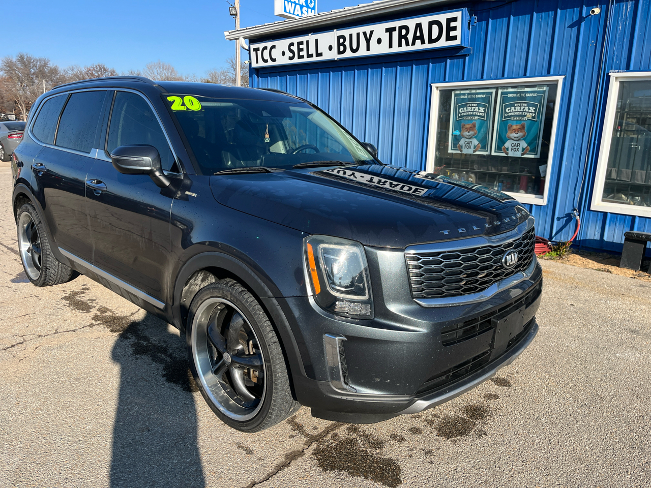 LOOK AT THIS 7 PASSENGER 2020 KIA TELLURIDE WITH LEATHER HEATED SEATS, BACK UP CAMERA, BLUETOOTH, 2ND ROW CAPTAINS, SUNROOF, NAV, POWER SEATS, BLIND SPOT MONITORING AND SO MANY OTHER OPTIONS. RATES AS LOW AS 5.99%, 5YR/60K MILE WARRANTIES AND CARFAXES ARE ALL AVAILABLE. IF YOU HAVE ANY QUESTIONS OR WANT TO SET UP A TEST DRIVE, FEEL FREE TO CALL JARED AND REALIZE HOW EASY BUYING A SUV CAN BE WHEN YOU TALK DIRECTLY TO THE OWNER. Introducing this sleek and stylish Blue 2020 Kia Telluride! This beauty is more than just a pretty face - under the hood lies a powerful Lambda II 3.8L GDI DOHC V6 engine, ready to take you on all your adventures with its Front-Wheel Drive capability. The 8-Speed Sportmatic Automatic transmission with Idle Stop & Go makes for a smooth and efficient ride, allowing you to glide through the streets effortlessly.